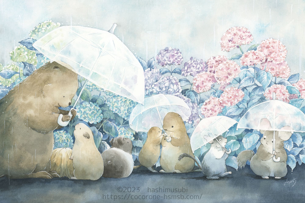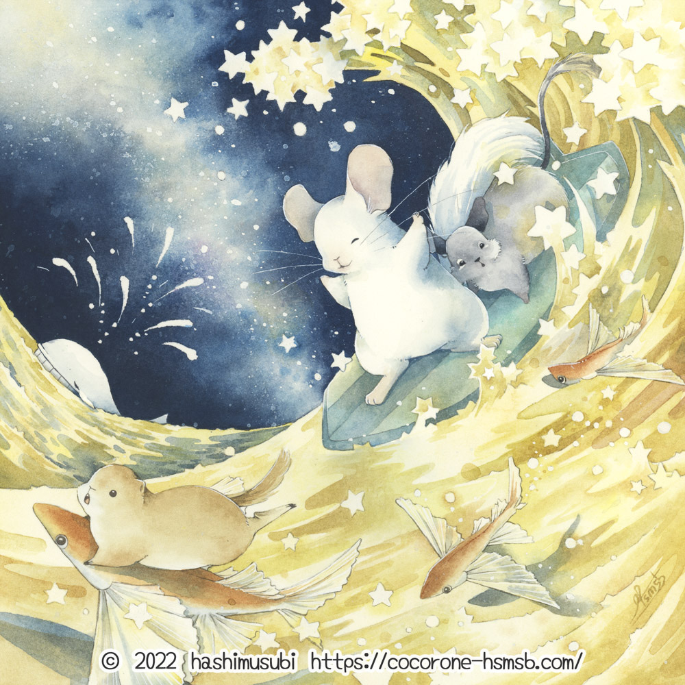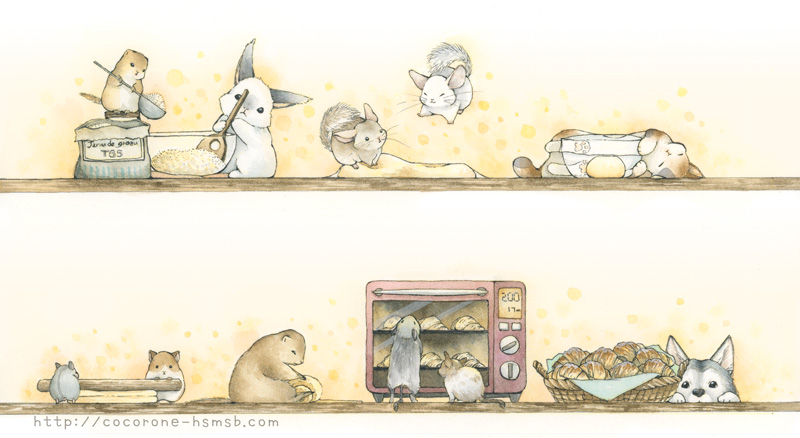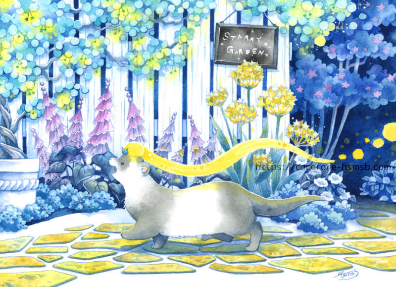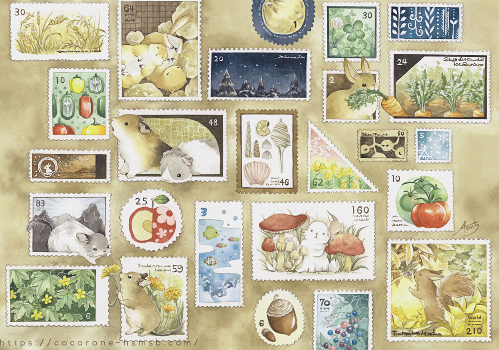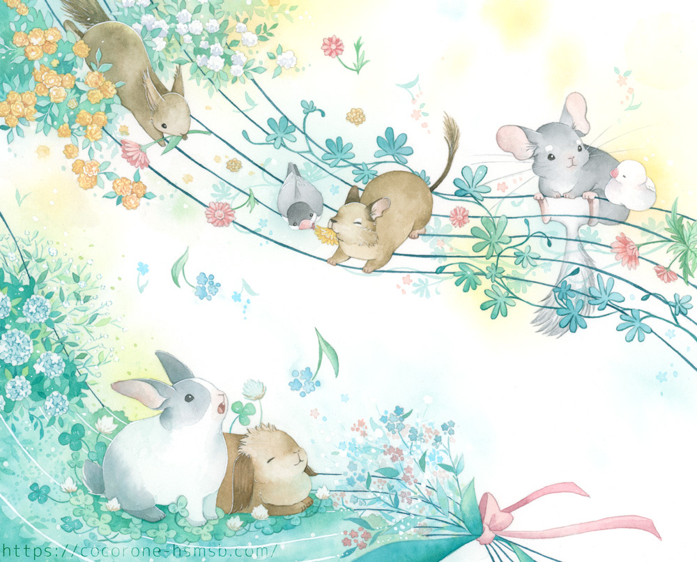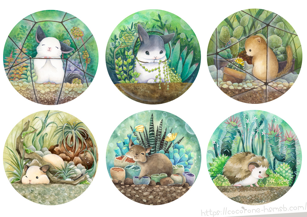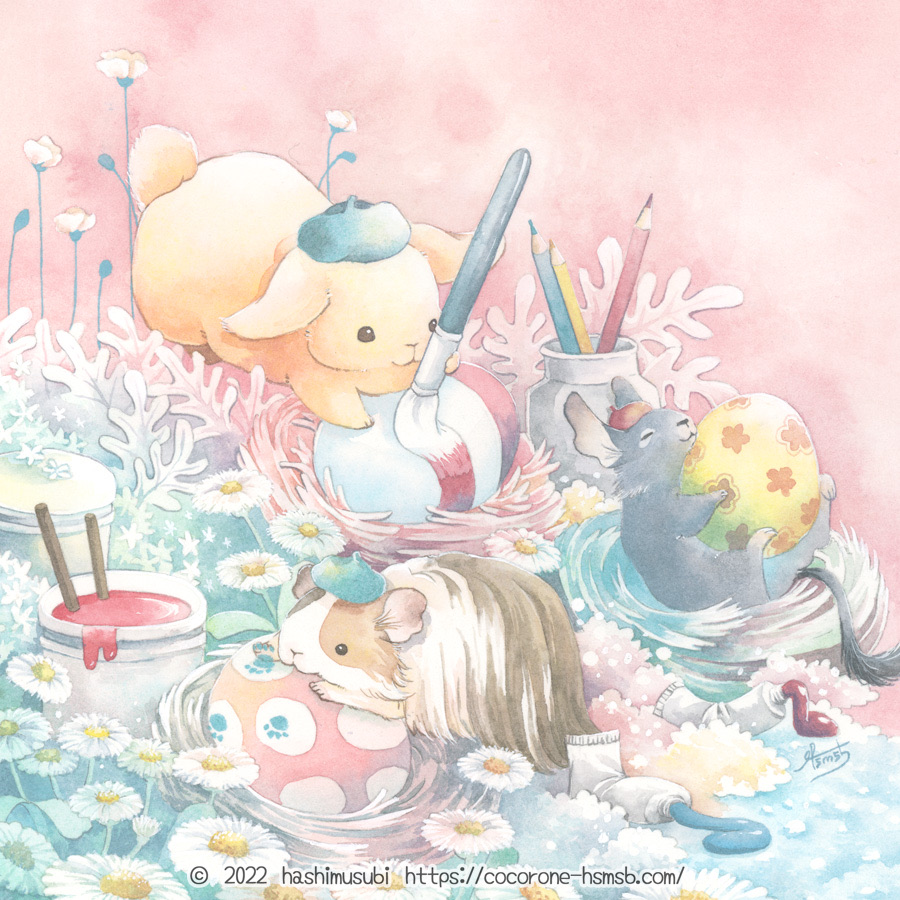 動物たちの仕草や、日々の中で出会った色私の好きなものを組み合わせて何か面白いものができないかと描いた作品たち。